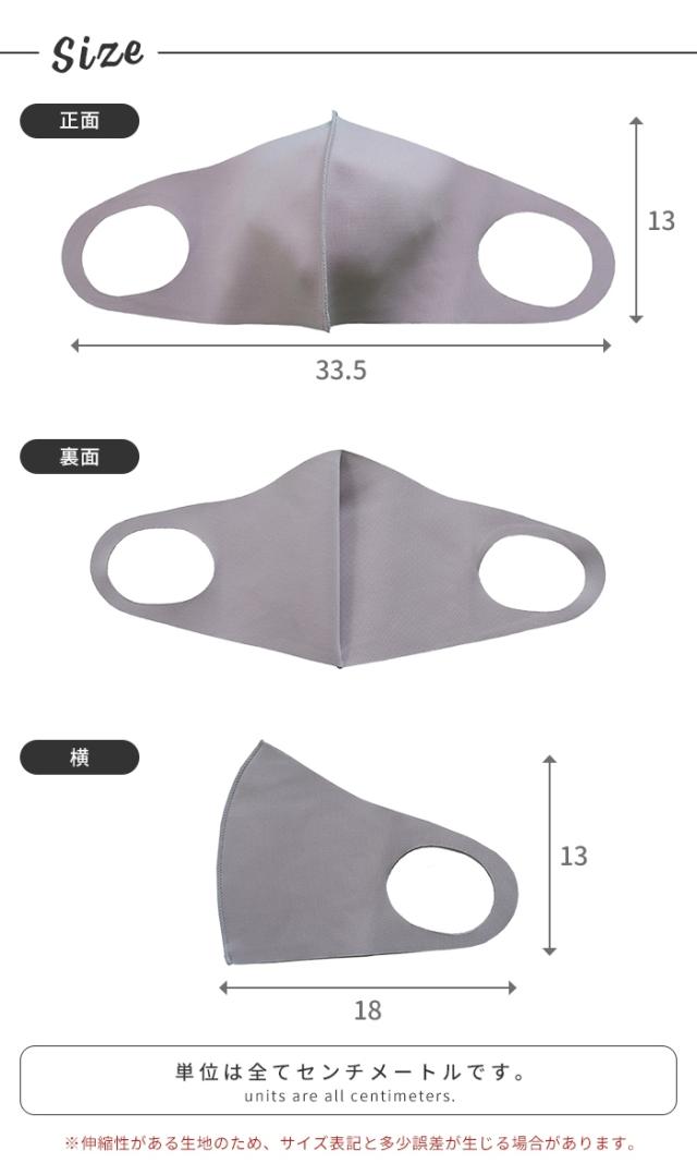 ポリエステル95%+ポリウレタン5%の特殊生地採用でベタつかず肌に優しいマスクです。