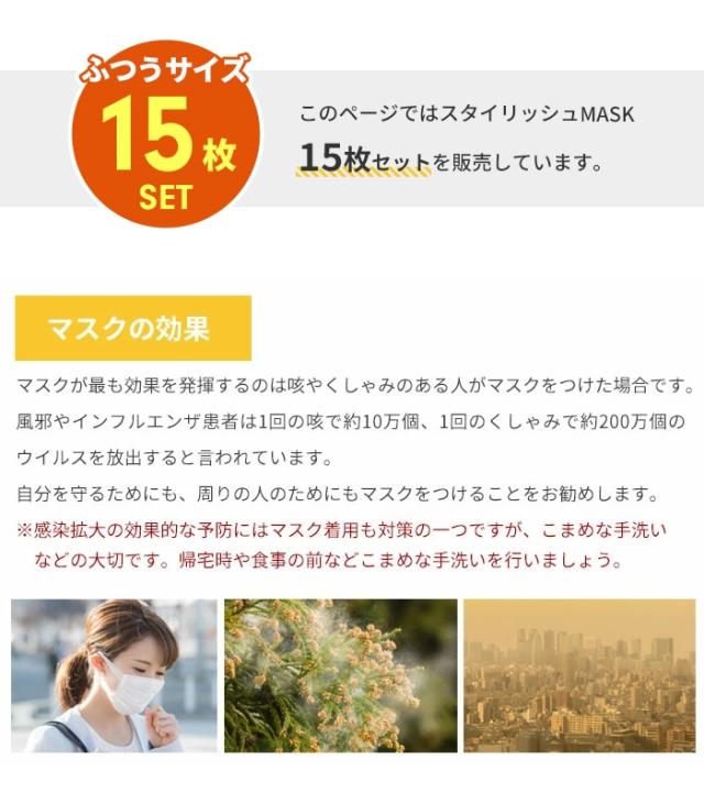 | 【スタイリッシュMASK 】 同色15枚入/同色90枚入/アソート18枚入 ※このページは[スタイリッシュMASK 同色15枚入]を販売しております。 |
