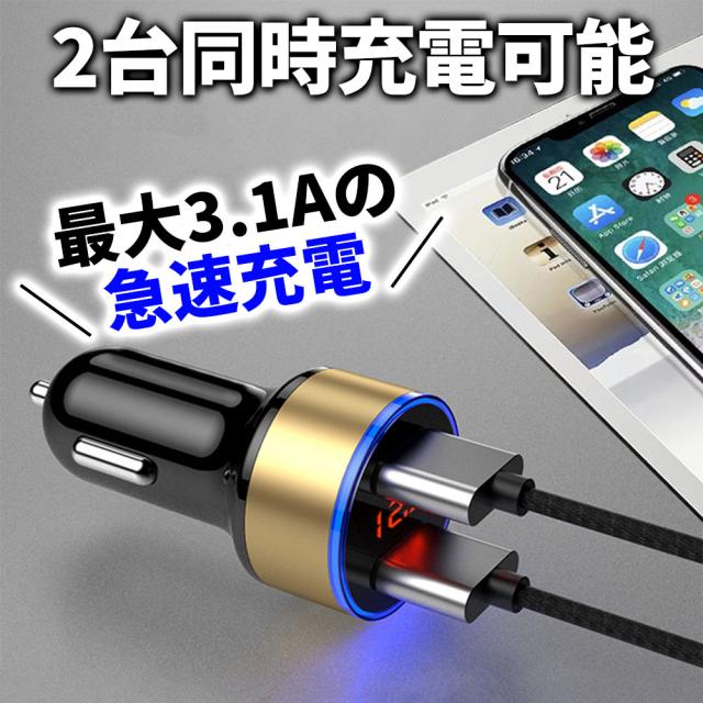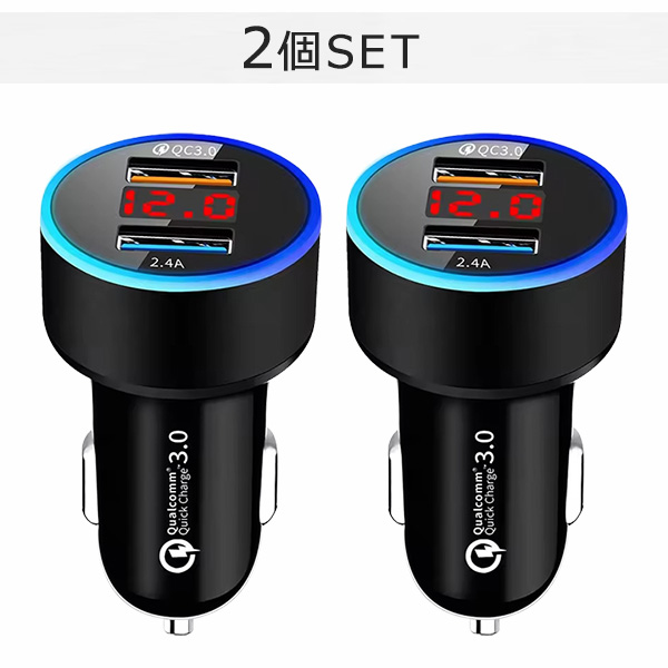 カーチャージャー 2個SET シガーソケット 2ポート iphone 急速 タイプc USB 車載充電器 車載 シガーソケット充電器 車 充電器 電圧計付き ライト 変換 急速充電器 多機能 カーソケット USB増設 車用