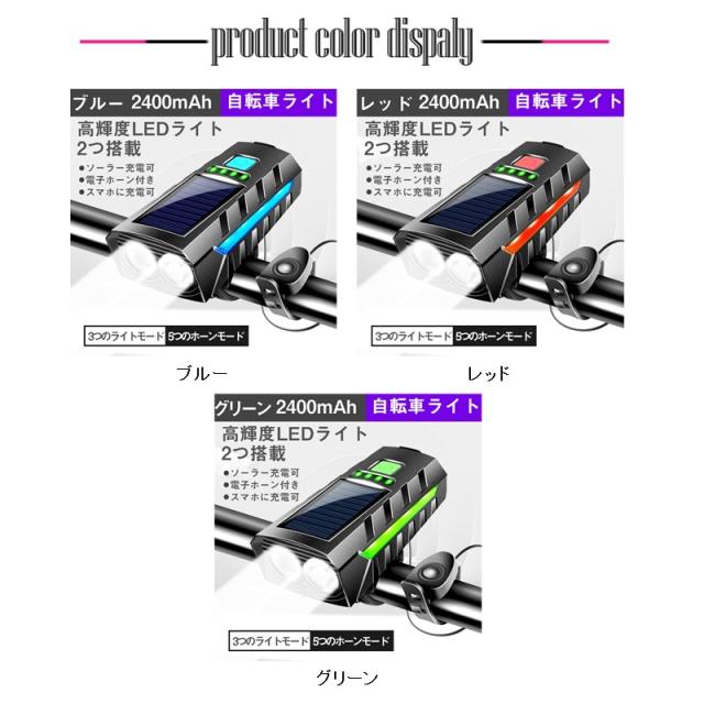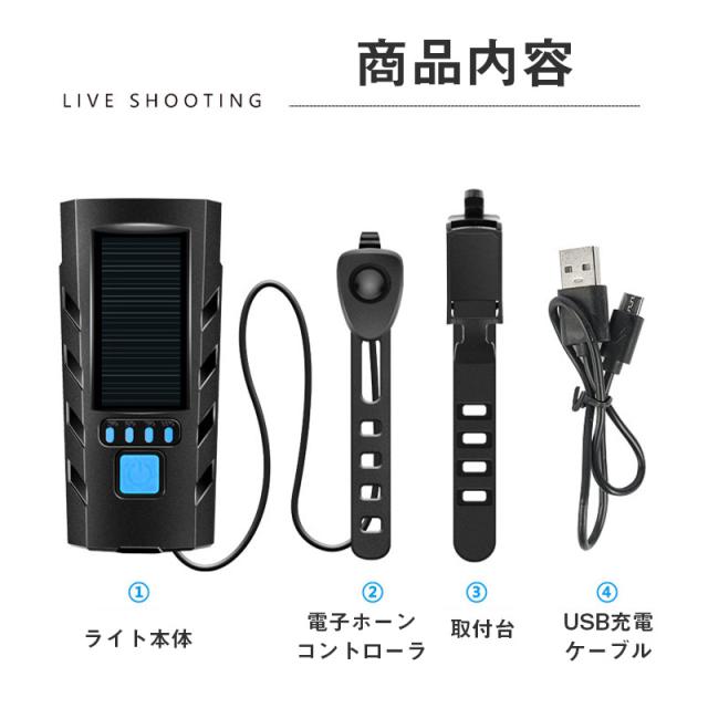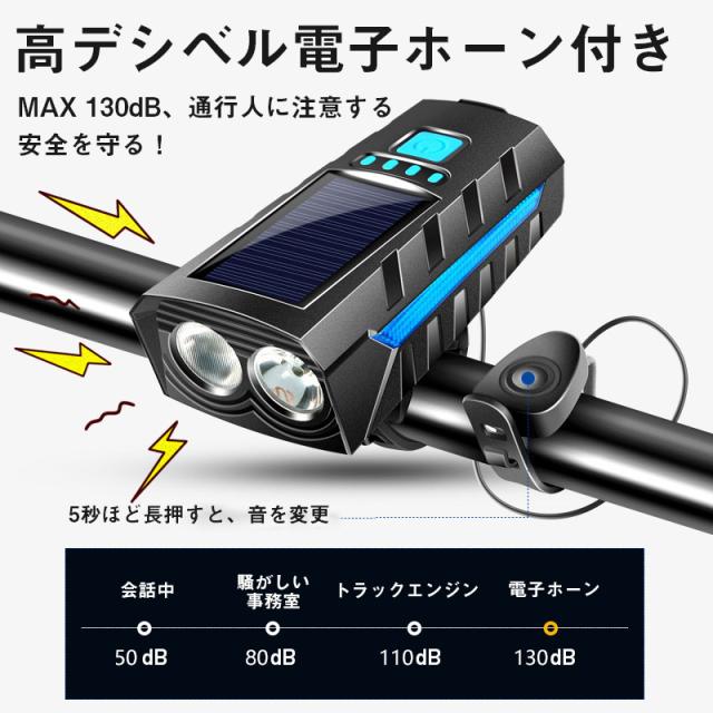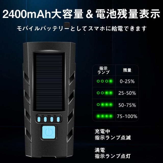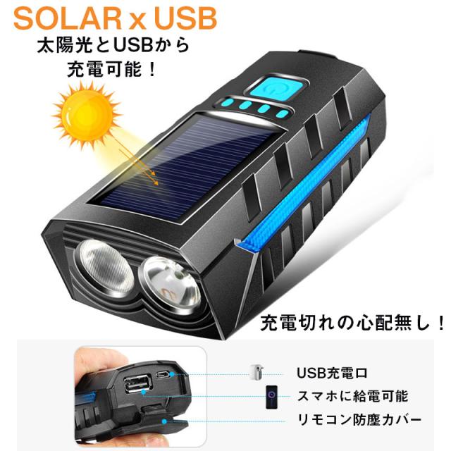 自転車 ライト ソーラー led 防水 明るい usb充電式 モバイルバッテリー機能 ハンディライト 懐中電灯 強力 キャンプ 工具不要 簡単着脱