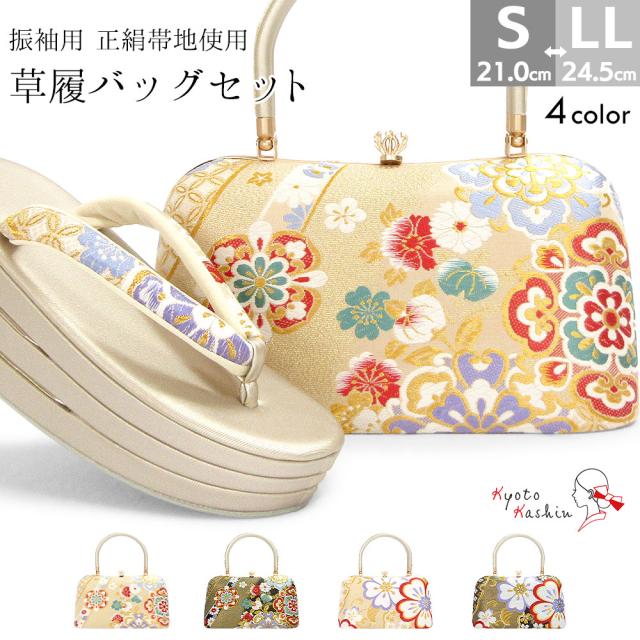 草履バッグセット 成人式 振袖 草履 バッグ セット バッグセット 草履バッグ 厚底草履 厚底 高級 正絹帯地 正絹 帯地 礼装 袴 S M L LL サイズ フリーサイズ 小さいサイズ 大きいサイズ ゴールド シャンパンゴールド 金 赤 黒 前撮り 結婚式 披露宴 謝恩会 卒業式