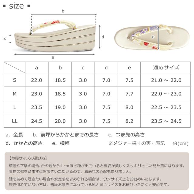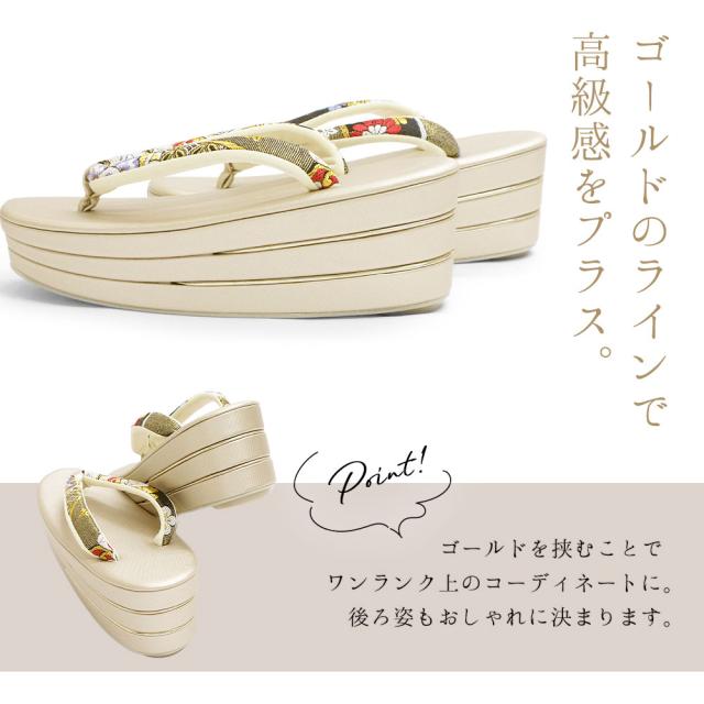 スタイルアップに欠かせない厚底草履でお着物姿をより華やかに演出します。
