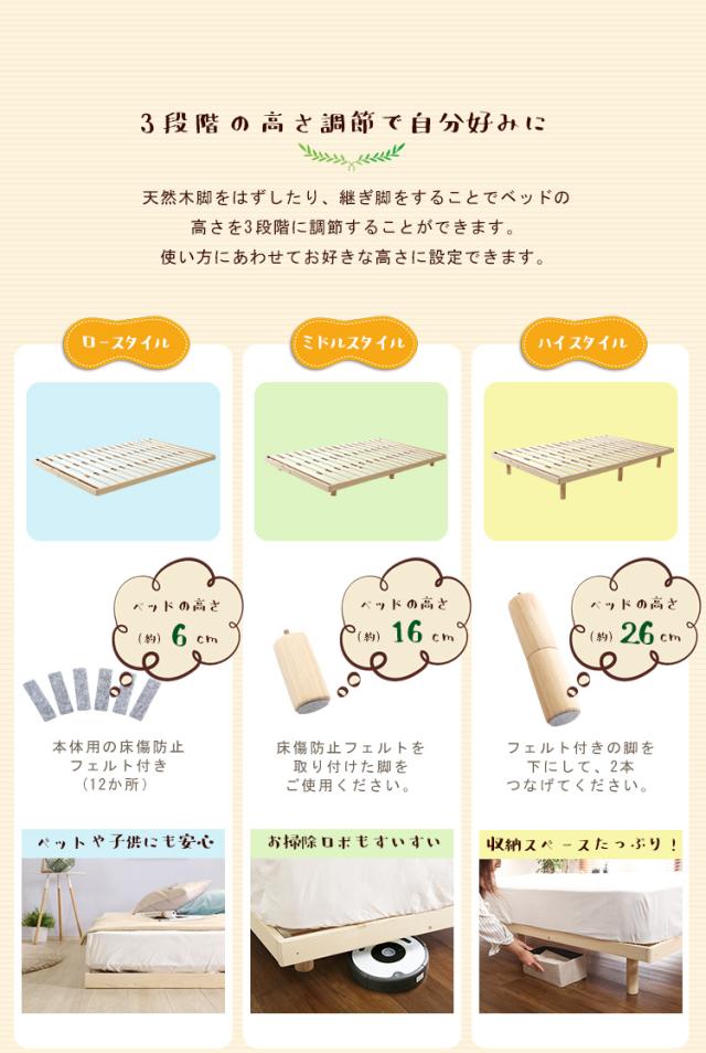 すのこベッド シングルベッド 3段階調節脚付き Lilitta(リリッタ) 3色対応 スノコベッド ベッド すのこベット Sサイズ ベット ベッドフレーム ロータイプ フレームのみ 木製 脚付き 高さ調節 シンプル おしゃれ 北欧