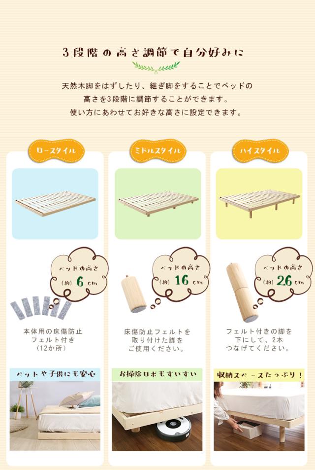 すのこベッド セミダブルベッド 3段階調節脚付き Lilitta(リリッタ) 3色対応 スノコベッド ベッド すのこベット SDサイズ ベット ベッドフレーム ロータイプ フレームのみ 木製 脚付き 高さ調節 シンプル おしゃれ 北欧
