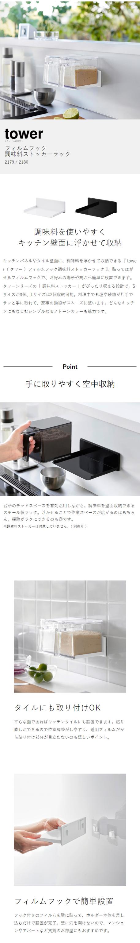 [ フィルムフック調味料ストッカーラック タワー ]山崎実業 tower 調味料ラック 砂糖 塩 キッチン 収納 スパイス ラック 浮かせる収納 壁 調味料ストッカー おしゃれ シンプル yamazaki 公式 黒 白 ブラック ホワイト 2179 2180【送料無料】