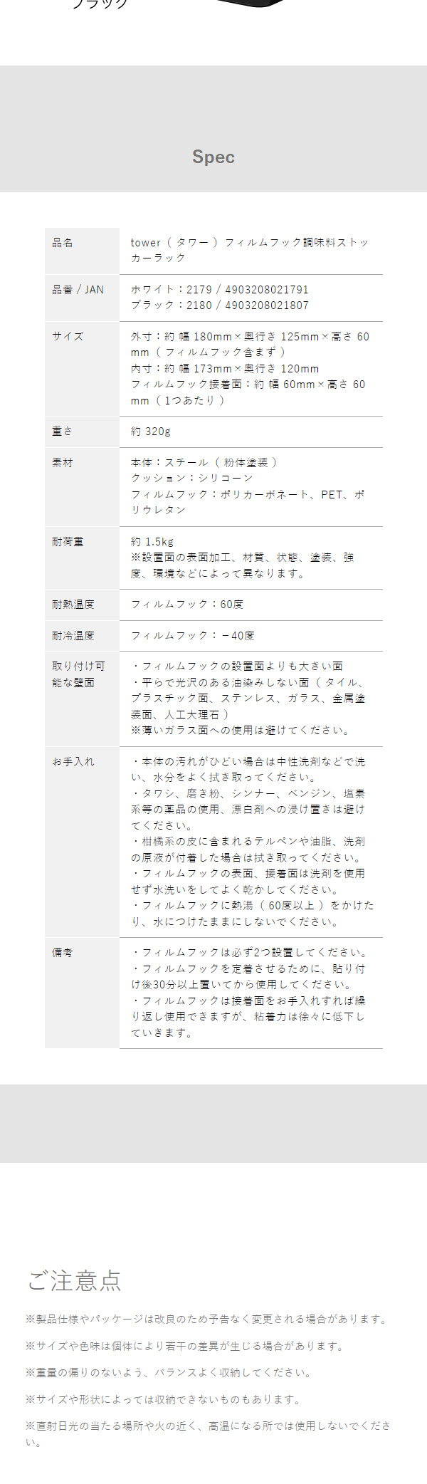 [ フィルムフック調味料ストッカーラック タワー ]