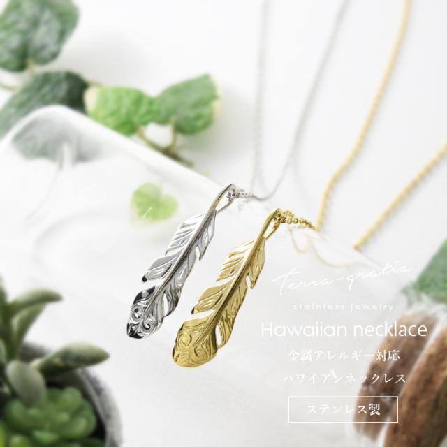 ハワイアンジュエリー ペアネックレス 2本セット 金属アレルギー ステンレス サージカルステンレス 316L つけっぱなし 羽根 フェザー ハワイアン ペンダント あずきチェーン付き gpss1539pair