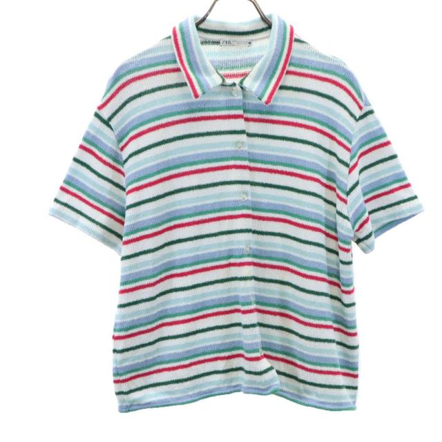 ザラ ボーダー 半袖 シャツ M グリーン系 ZARA メンズ