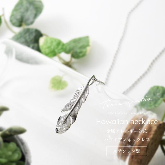 ハワイアンジュエリー ネックレス メンズ レディース 男女兼用 ステンレス つけっぱなし 羽根 フェザー あずきチェーン付き ハワイアン ペンダント サージカルステンレス 316L 金属アレルギー対応 スティールシルバーカラー gpss1539st