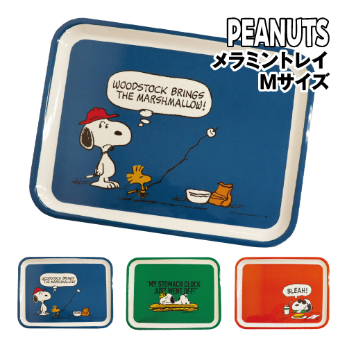ピーナッツ/スヌーピー メラミントレイ Mサイズ PL-1600-2 / MARSHMALLOW/ブルー SANDWICH/グリーン HAMBURGER/レッド