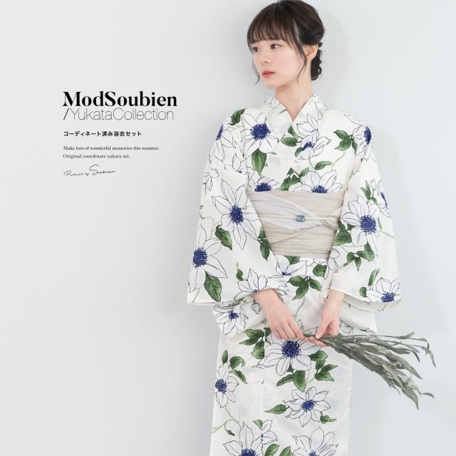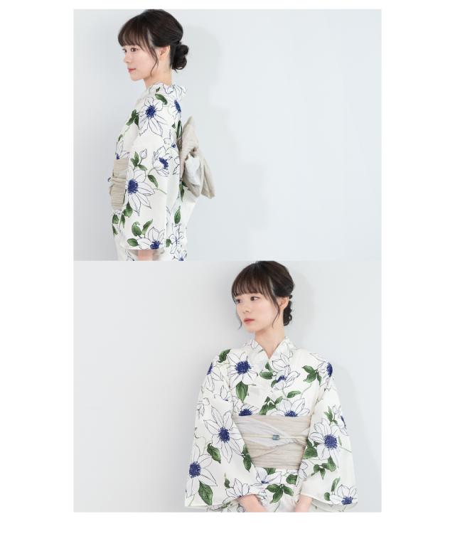 浴衣 セット レディース 浴衣セット 兵児帯 2026 大人 3点セット モダン 白 緑 ベージュ 花 ポリエステル Sサイズ フリーサイズ 送料無料