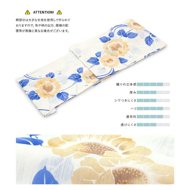こちらの商品は、浴衣・帯・下駄の3点セットです。セット内容の一部変更や、それに伴う値引きは承っておりません。/商品入荷の都合により、帯の艶感や地模様が画像と異なる場合がございます。