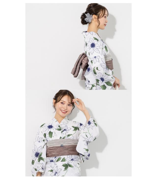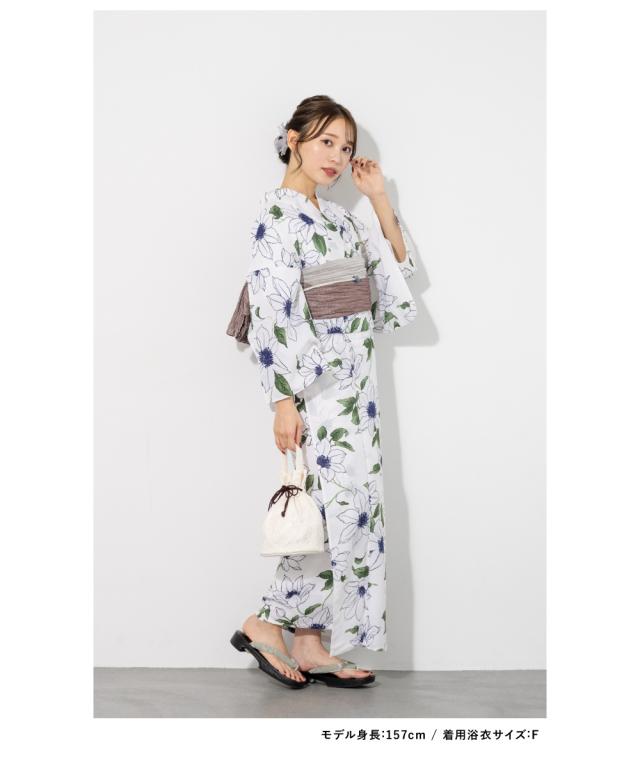 浴衣 セット レディース 浴衣セット 兵児帯 2026 大人 3点セット モダン 白 緑 ブラウン グレー 花 ポリエステル Sサイズ フリーサイズ 送料無料