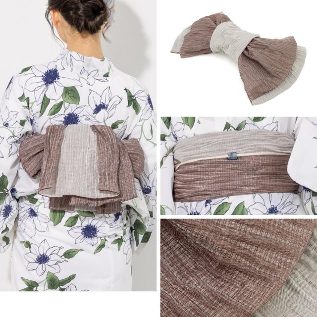 こちらの商品は、浴衣・帯・下駄の3点セットです。セット内容の一部変更や、それに伴う値引きは承っておりません。/商品入荷の都合により、帯の艶感や地模様が画像と異なる場合がございます。
