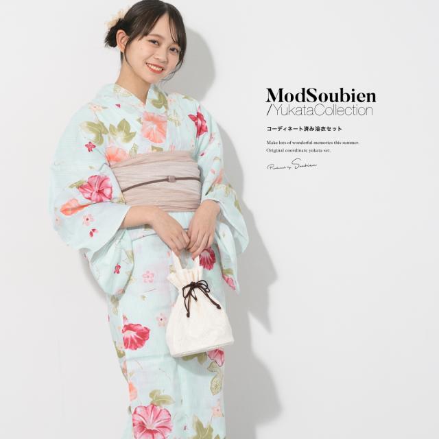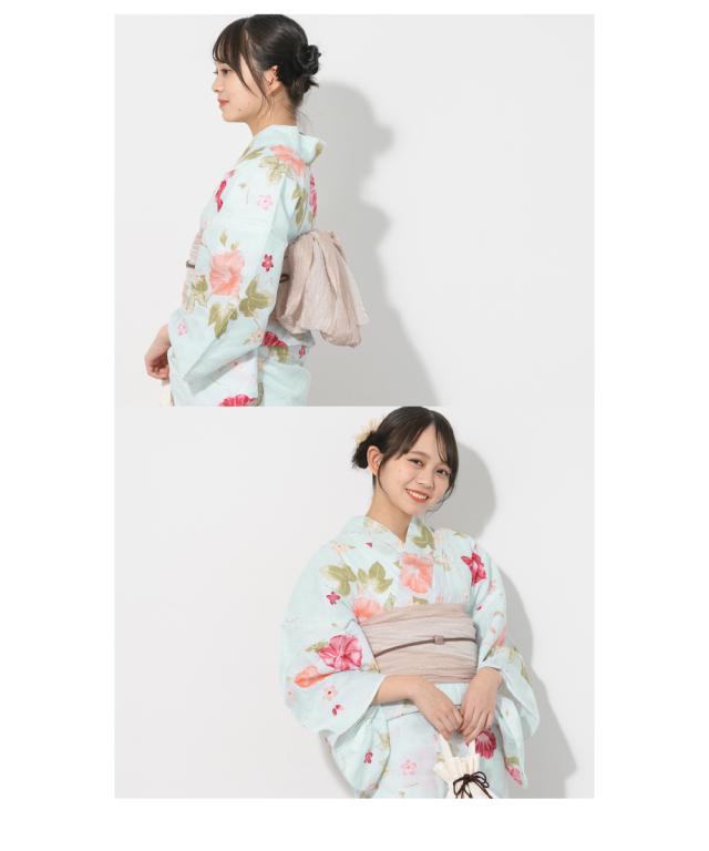こちらの商品は、浴衣・帯・下駄の3点セットです。セット内容の一部変更や、それに伴う値引きは承っておりません。/商品入荷の都合により、帯の艶感や地模様が画像と異なる場合がございます。