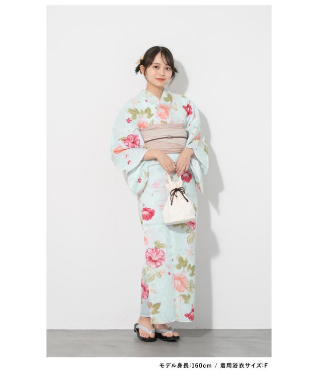 浴衣 セット レディース 浴衣セット 兵児帯 2026 大人 3点セット モダン 水色 ピンクベージュ ベージュ 白 縞 朝顔 綿 ポリエステル フリーサイズ 送料無料
