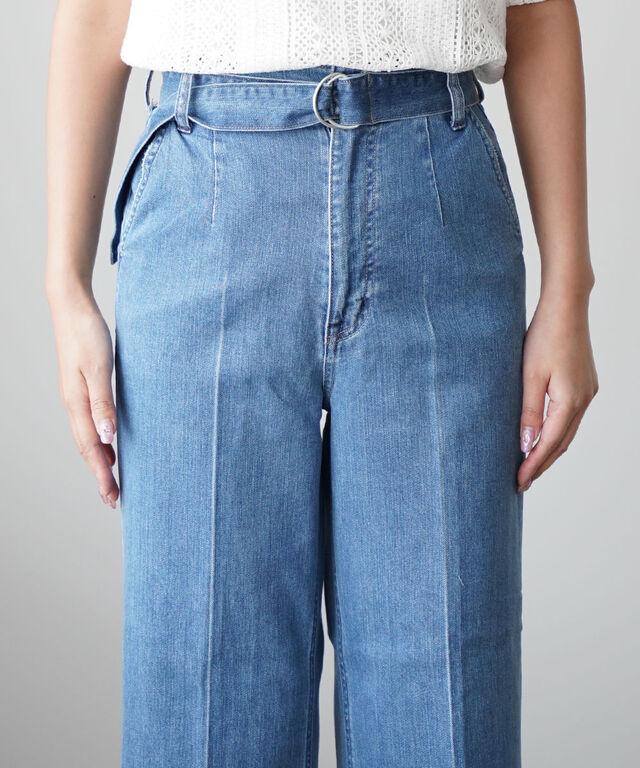 薄着になる夏に、トップスをインしてもサマになるように共布のベルトがついています。
