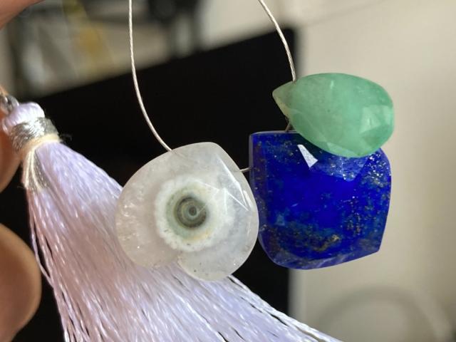XS23-23 希少石 ハット 天然 ソーラークォーツ ラピスラズリ エメラルド ルース 裸石 ピアス パーツ 横穴 ペンダント