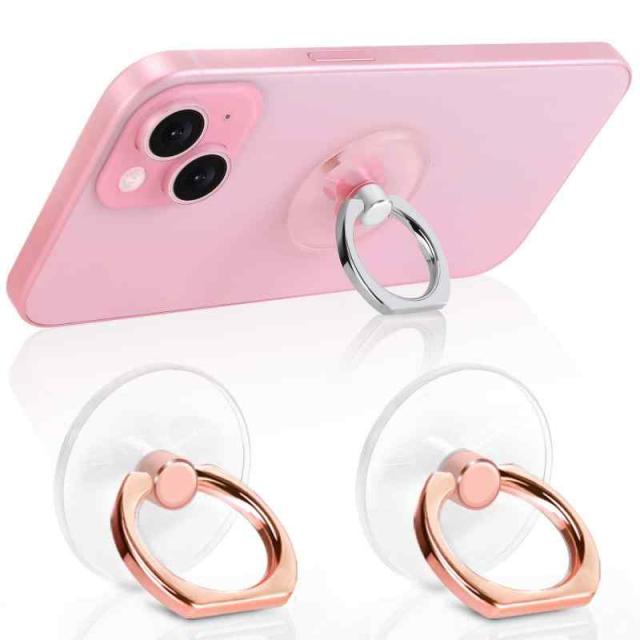 Jsoerpay スマホリング 透明 薄型 バンカーリング 360°回転 落下防止 指輪型 スタンド機能 スマホ用透明 スマホ リング、ほとんどのスマホ、タブレット、ケースに対応 (2個ローズゴールド)