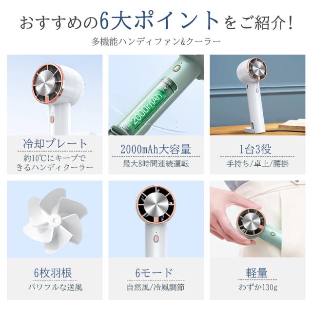 ハンディファン 携帯扇風機 ミニ扇風機 冷却プレート付 3段階風量 2000mAh 6枚羽根 卓上 扇風機 ハンディ扇風機 強力送風 Type-C充電 風量調節 熱中症 暑さ対策 涼しい 花火大会 スポーツ観戦 アウトドア PSE認証