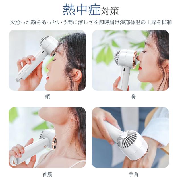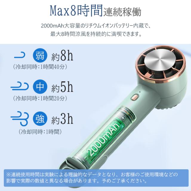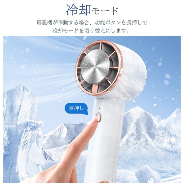 【2024最新:冷却機能付き携帯扇風機】冷却プレート付きのハンディファン、スイッチを長押しすると、3秒後に冷却開始、プレート部に冷却水が見られ、頬や首元などに触れると肌が急速に冷却されて即時クールダウン。物理的な冷却方法を採用し、まるで氷を当てているように火照った肌をあっという間に冷やし、汗の不快感も爽やかに変えて、炎天下でも冷え冷え。真夏の熱中症対策として最適、一度使うと手放せないひんやり扇風機です。