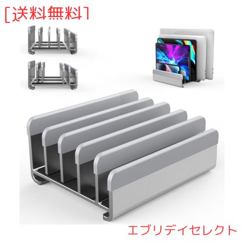 ノートパソコン スタンド 縦置き pcスタンド 収納 冷却 ホルダー幅調節可能 アルミ合金素材 クラムシェルスタンド 5台収納 省スペース 滑
