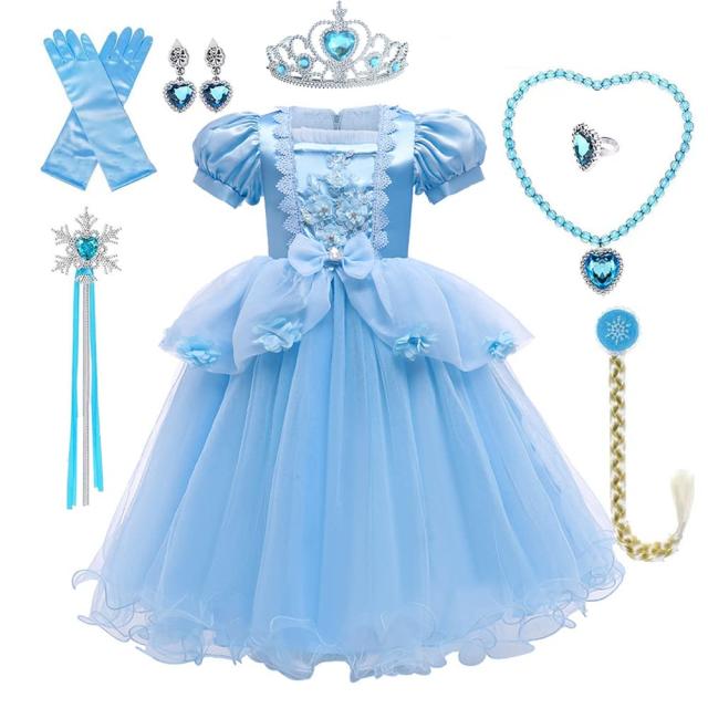 【シンデレラ風プリンセスドレス】ディズニーのクラシックキャラクター、シンデレラをインスピレーションに、お子様のために魅力的なプリンセスドレスをデザインしました。ヨーロッパ風の広い袖口と多層のふんわりとしたスカートで、お子様をまるでおとぎ話の中のプリンセスのように華麗に演出します。青色とピンクを中心としたカラーは、ロマンチックな雰囲気を放ちます。美しい刺繍とパールの装飾は、上品さと品質を際立たせています。特別な魔法の杖や王冠と合わせれば、お子様のプリンセスの夢を叶えることができます。