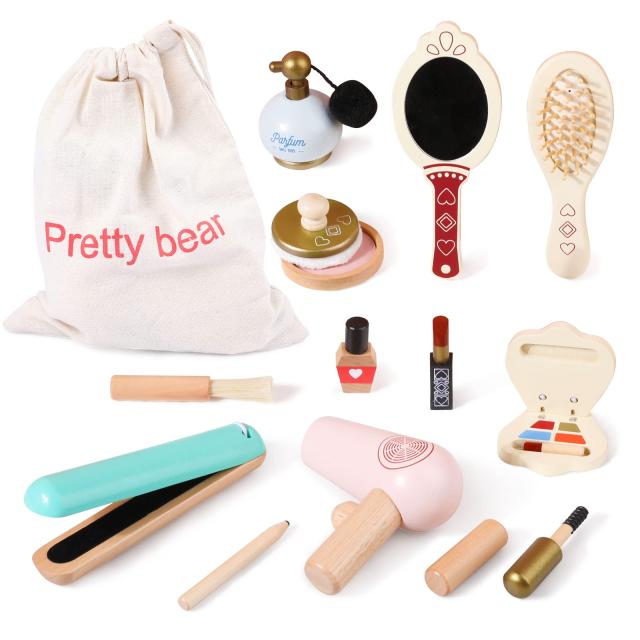 Wooden Teether メイクセット おもちゃ 木製 コスメ アップ 子供用 ままごと 化粧おもちゃセット 化粧品 美容院 12Pcs 3歳以上 女の子 収