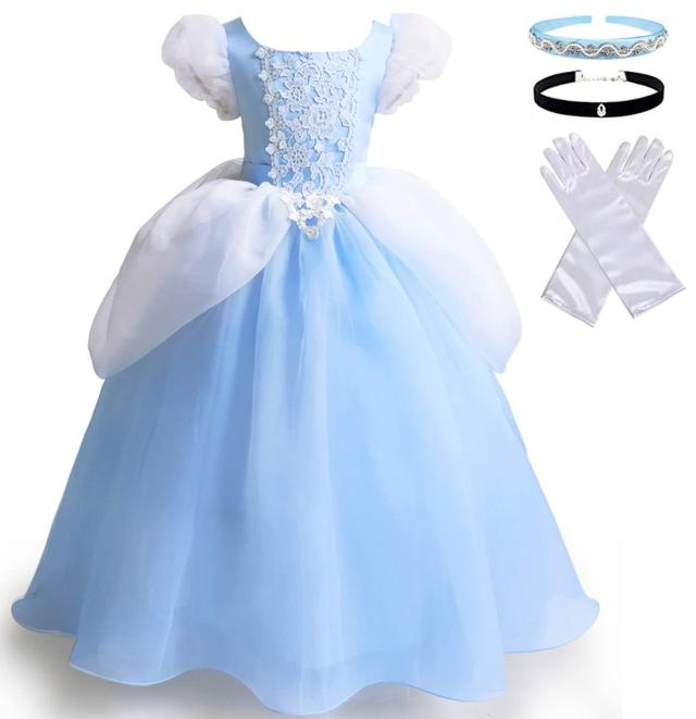 [TYHTYM] シンデレラ ドレス 子供用 プリンセスドレス(ドレス+ティアラ+ネックレス+手袋) 4点セット 100-120cm コスプレ キッズコス