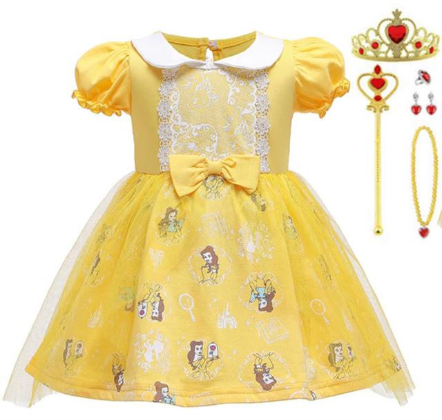 ◆商品名:[TYHTYM] ベル ドレス プリンセスドレス(美女と野獣風ドレス+ティアラなど) 6点セット ナイトドレス キッズコスチューム 春夏用 半袖ド