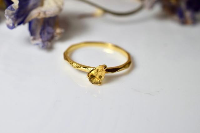 124 天然 シトリン リング 指輪 天然石 黄水晶 雫 ミニ シンプル つや消し 艶消し