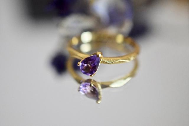 124 天然 アメジスト アメシスト 紫水晶 リング 指輪 天然石 雫 ミニ シンプル つや消し 艶消し