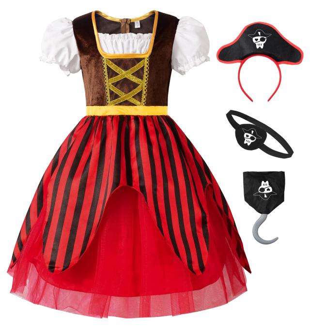 【セット内容】ワンピース、海賊カチューシャ、フック、アイパッチ