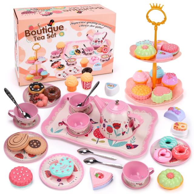 Qizebaby アフタヌーンティーのおもちゃ 48 PCS おままごと セット おもちゃ 屋内ゲーム お茶 ティーポット ティーセット ビスケット ケ