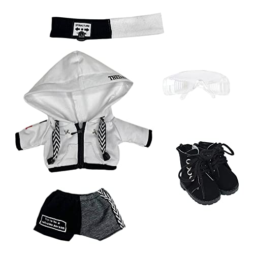 niannyyhouse 20cm ぬいぐるみ 服 ルーズ 黒と白のスーツ ヘアバンド パーカー カラーブロックショーツ メガネ 靴 綿人形の服