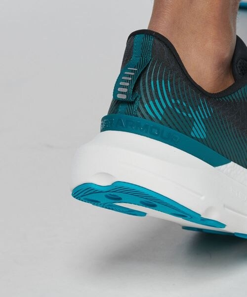 高いフィット感のアッパーとUAホバー+クッショニングが着地時の安定性を向上。