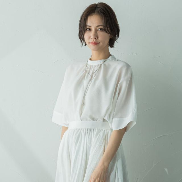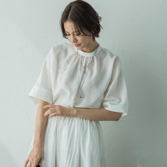 シーンレスに活躍するシアーブラウスになっています!