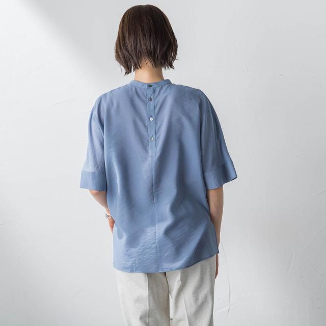 店舗別注で昨年実績のあるデザインを今年らしい素材感にアップデートしたブラウス。