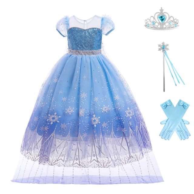 [MUXIU] プリンセス ドレス 仮装 ハロウィン 女の子 子供 エルサ風 お姫様 ブルー コスプレ アクセサリー 女の子 なりきり 可愛い ワンピ