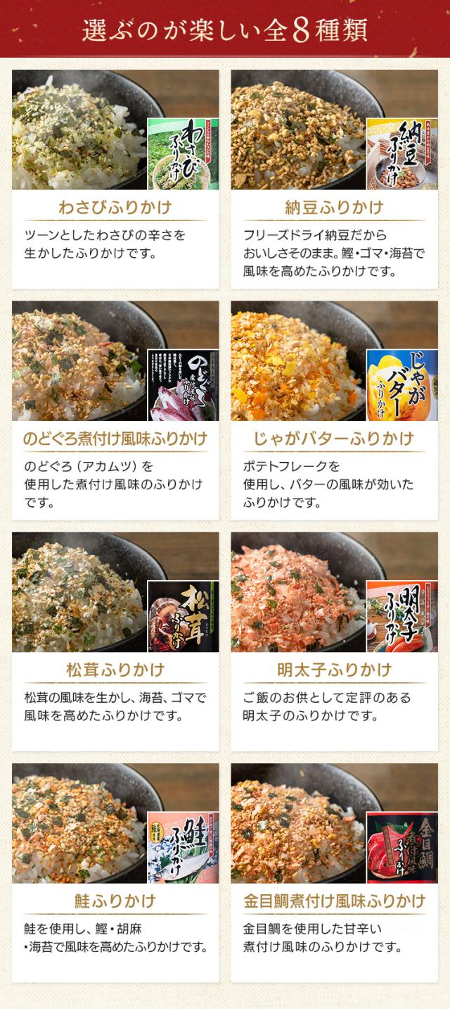 ふりかけ ご飯のお供 朝食 【3個セット】ふりかけ 85g(金目鯛煮付風味/80g、じゃがバター/65g) 全8種類 ふりかけ ご飯のお供 ごはんのお供 ごはんのおとも わさび ワサビ 納豆 のどぐろ 金目鯛 松茸