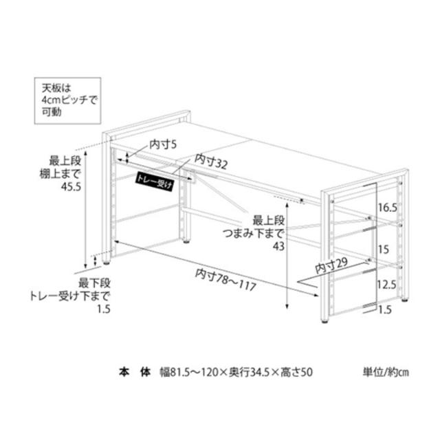| サイズ | 約 幅81〜120×奥行34.5×高さ50(cm) |