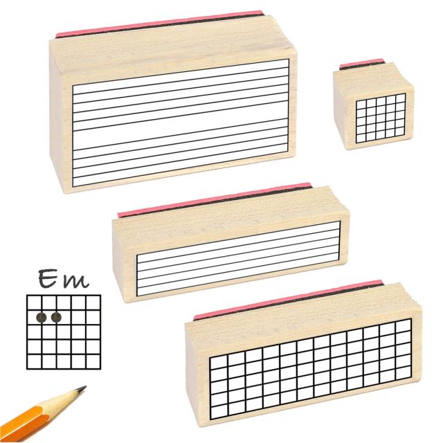 ギターを教えている先生、学んでいる生徒、ミュージシャン必見!教えるのにも、学ぶのにもピッタリな時間短縮秘訣スタンプ!楽譜やノートにこのスタンプを押すだけで、すぐにどこででも五線譜に音符を、タブ譜に番号を書き込むことができます。これで多くの時間を削減できます!本体は手触りの良い木製でできていますので、安心してお使いいただけます。