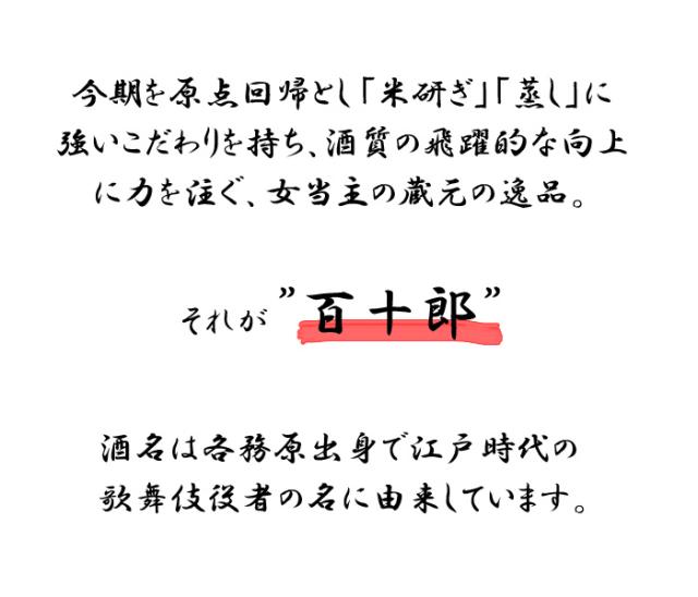 赤面(あかづら)と並ぶ「百十郎」の2枚看板と言ってもよい存在のお酒です。