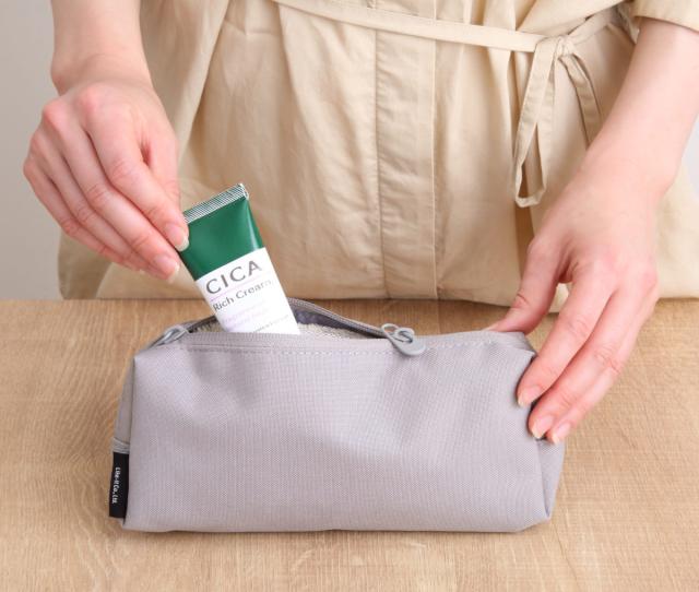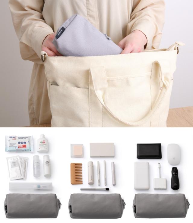シンプルなポーチなので単体としても汎用性が高く、メイク道具、ガジェット類、トラベル用品や薬類など、用途別にひとまとめにしておけば、お出かけの際にそのままカバンに入れて持ち出せるので便利です。