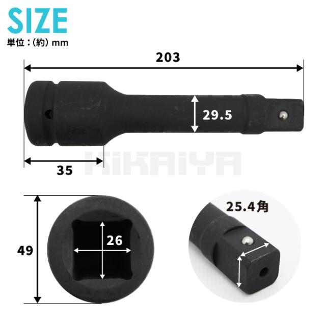 エクステンションバー 25.4角 1インチ 200mm 延長 インパクト エアー 電動 トルクレンチ KIKAIYA