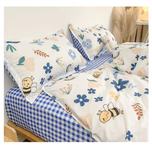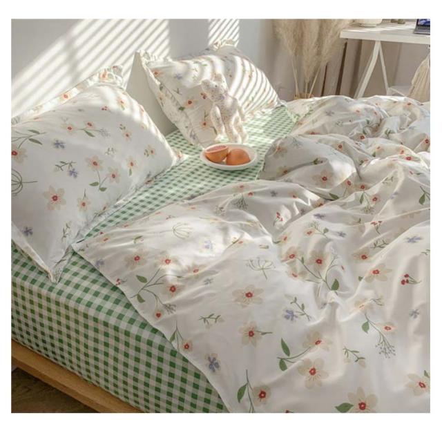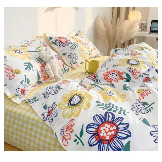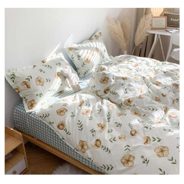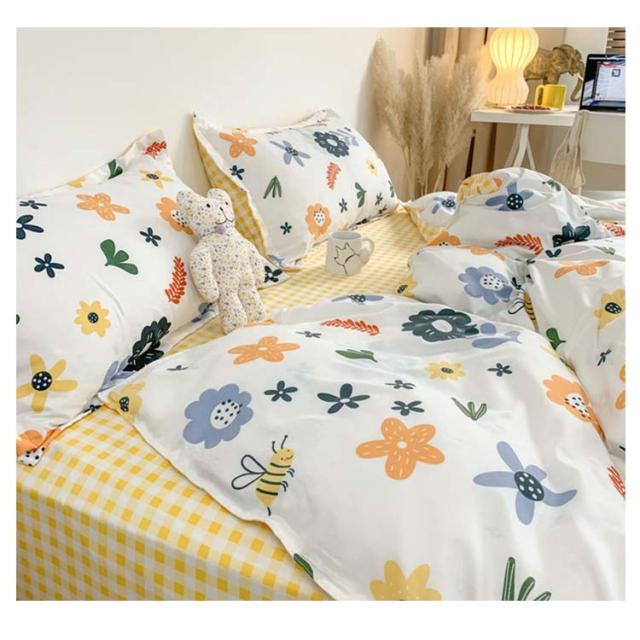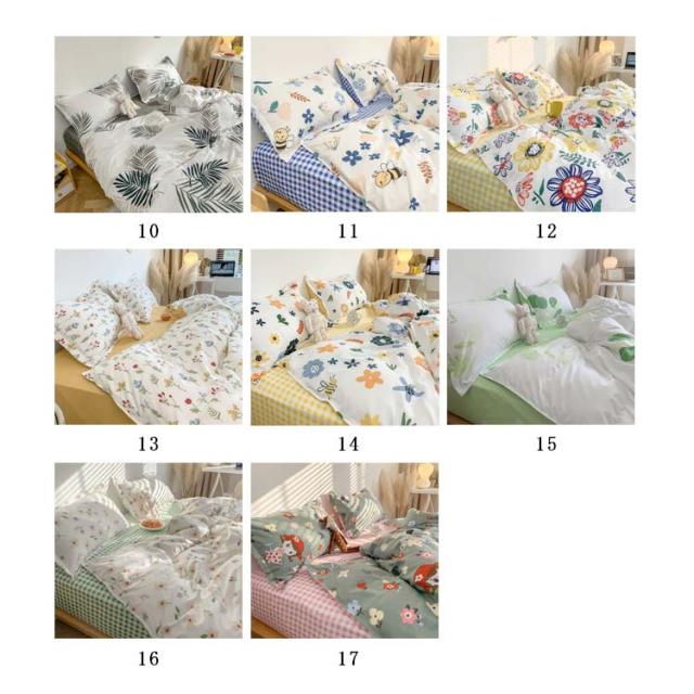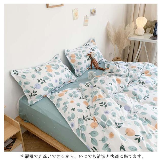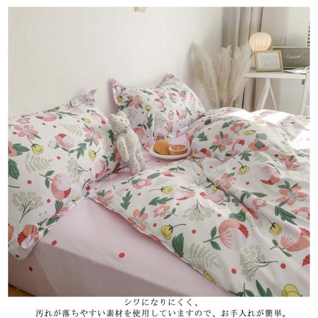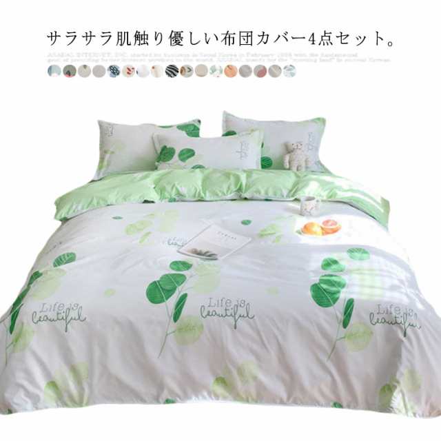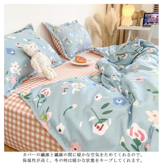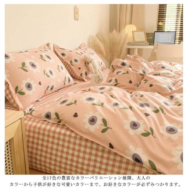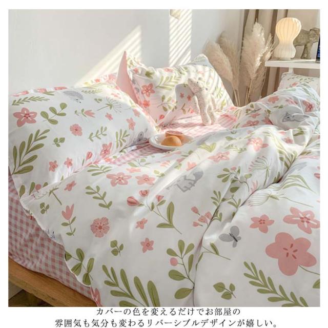 全17色 布団カバー 4点セット リバーシブル 掛け布団カバー フラットシーツ 枕カバー 花柄 チェック柄 寝具カバーセット シングル セミダ