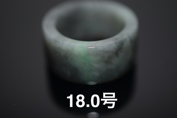 110-13 18.0号 天然 A貨 グレー 黒 グリーン翡翠 板指 広幅 リング 指輪 硬玉ジェダイト
