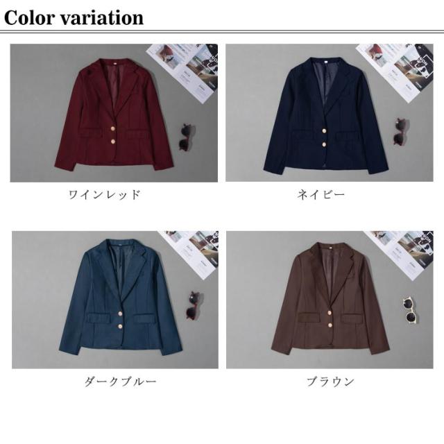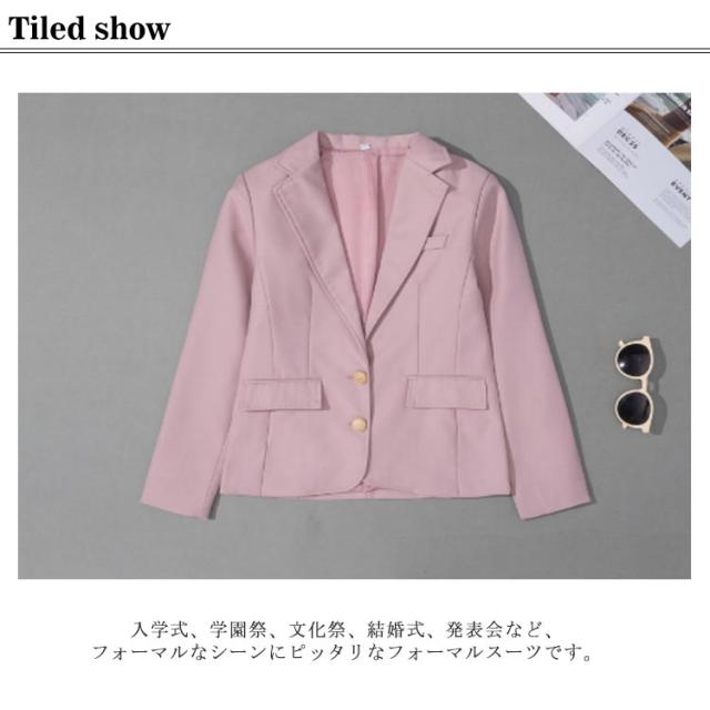 | シンプルなデザインとすっきりとしたシルエットがクールなジャケット。 100%ポリエステルを使用しており、柔らかくて肌触りが良く、通気性も良いシンプルなキレイめジャケットです。(裏地付き) 袖口にゴールドのボタンが二つ飾られ、清楚で上品な印象を演出します。 Vゾーンをすっきり見せる襟デザインとなっています。 オールシーズン使うことができ、着やすく合わせやすいので普段着として大活躍しそうです。 きちんと感がありながらも堅苦しくないスタイルは着回し力抜群◎ 入学式、学園祭、文化祭、結婚式、発表会など、フォーマルなシーンにピッタリなフォーマルスーツです。 | |