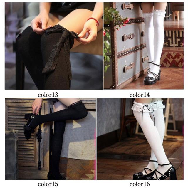 全20種類展開!オーバーニーソックス オーバーニーハイ 無地 ニーハイソックス レース 靴下 レディース