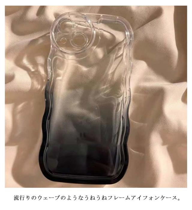 iPhoneケース クリア うねうね なみなみ iphone14 iphone13pro max iphone12 グラデーション 韓国 シリコン 耐衝撃 黒 かわいい スマホケ